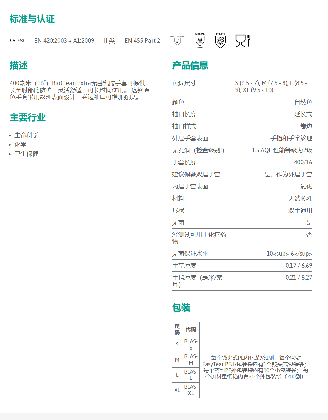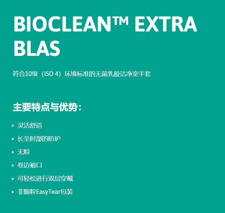 符合10级(ISO 4)环境标准的无菌乳胶洁净室手套