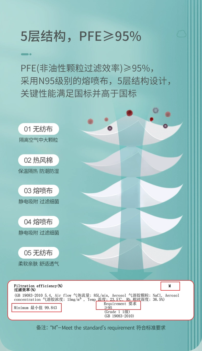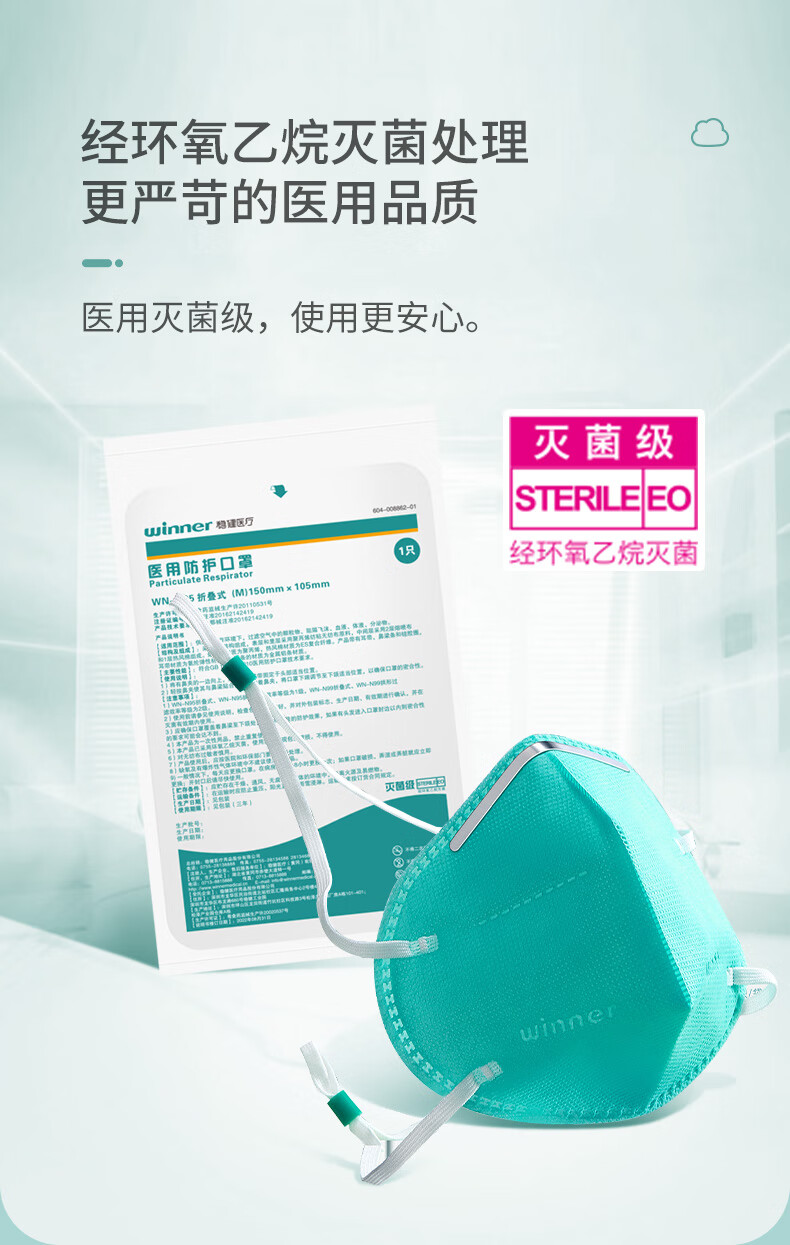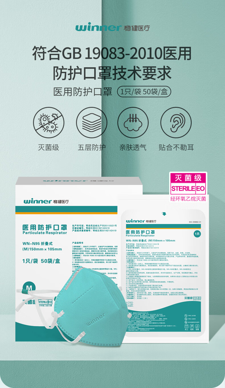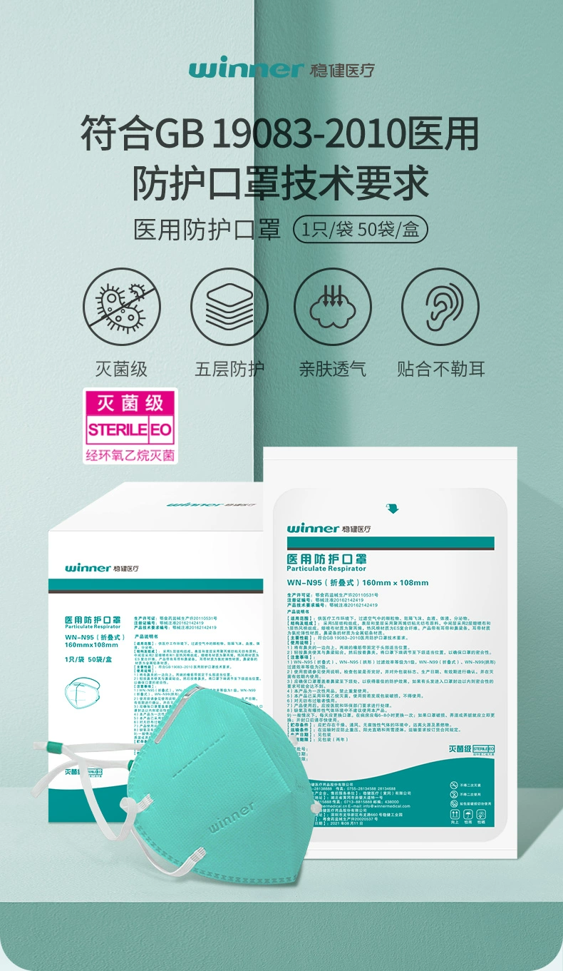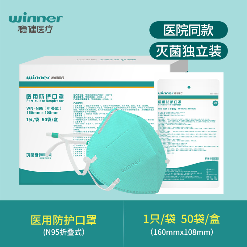 ①稳健成人防护口罩WN-N95 立体剪裁防护用品 独立包装防护口罩 50袋/盒 150x105mm 1片/袋