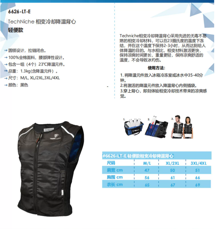 产品描述:经济款相变降温背心包含一组 (4个) 经济款23度相变降温元件