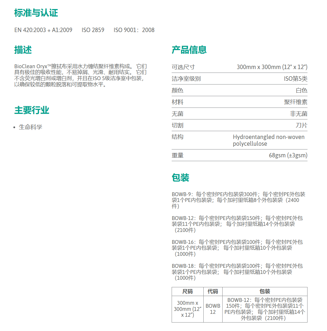 BIOCLEAN™ ORYX WIPE BOWB 12