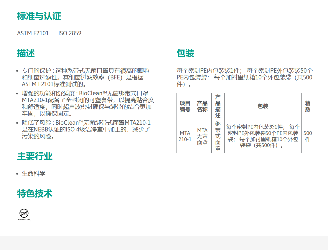 绑带式口罩适用于ISO Class 4 & EU GMP Grade A洁净灭菌区域